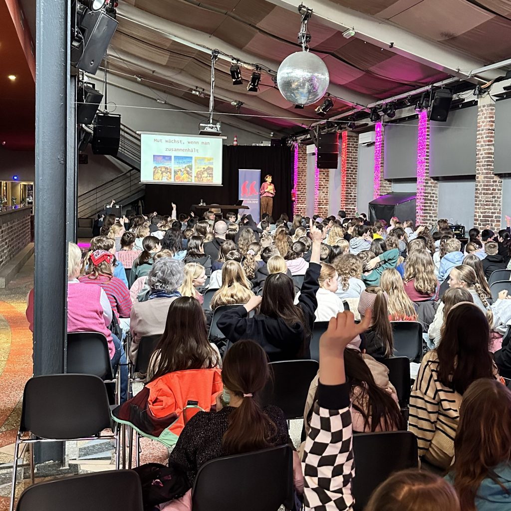 Etwa die Hälfte meiner Zeit verbringe ich am Schreibtisch zuhause in Mainz, feile an neuen Abenteuern und lausche, was meine Figuren mir zuflüstern. In der anderen Hälfte mache ich mich auf den Weg zu Schulen, Bibliotheken und Literaturfestivals, um Kindern aus meinen Büchern vorzulesen.